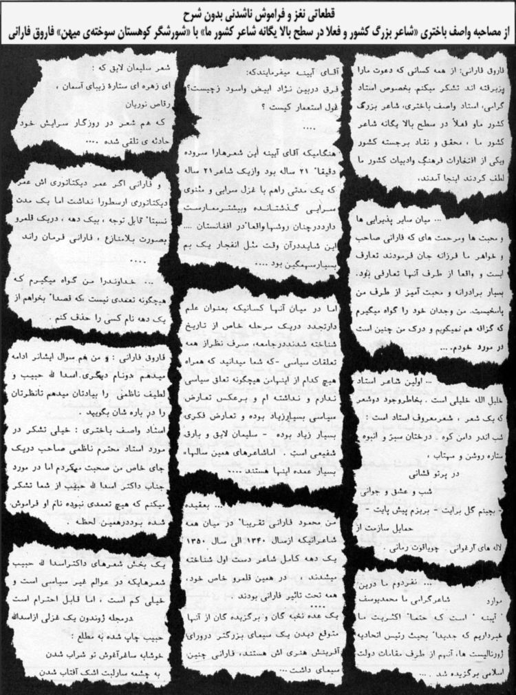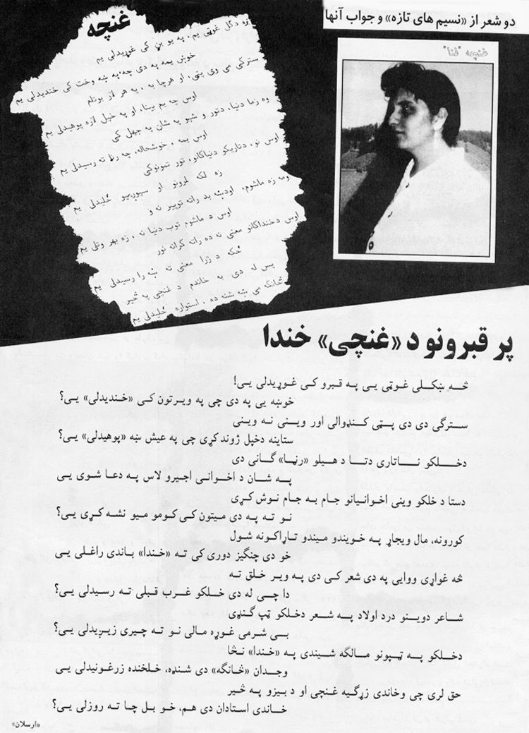 «راه»، سنگر متحد شاعران و نویسندگان خادی، سازشكار و خاینقرار بود درین شماره طبق وعده مقاله «"راه" سنگر متحد شاعران و نویسندگان خادی، سازشكار و خاین» را بیاوریم كه نوشتهی مفصل حاضر از محمد ر.م. بدست ما رسید كه ما هم بر اساس تقدم و احترام به نظرات خوانندگان عزیز، انتشار بخشهایی از آن را بجای مقالهی مذكور (اما با همان عنوان) ترجیح دادیم. همانطوری كه مطلب شماره قبلی از خواننده ارجمند ما «ح.قاریزاده» مورد توجه و ستایش فراوان خوانندگان واقع شد، امید این نوشته هم جنبههای دیگری از «راه» را كه برای بوسیدن پای اخوان و نوكران پرچم و خلق گشوده شده، روشن ساخته و به مثابه فاتحهنامهی نهایی آن ابتذال نامهی «بیایدئولوژی» تلقی شود. (...) نشریه «راه» در یك شورهزار نامتعهد و در بستر چركین فراریان اروپا روییدن گرفت با عدهای از روشنفكران سرخورده و به بنبست رسیده، با عدهای نویسندگان و شعرایی كه در طول دوران اشغال برای بدنامترین رژیم دنیا قلم میزدند و دور از سنگر مبارزاتی مردم در یك هیچستان بیحجم دنیا را از دیدگاههای مالیخولیایی خود تصویر میكردند. به استثنای تعهد انقلابی و سیاست انقلابی ضد بنیادگرایی و ضد پرچمی و خلقی، این «راه» بروی هر چیز باز است و توقف ممنوع ندارد. از اشعار نیمه پورنوگرافیك تا تمجید حنجرههای كثیفی كه بمنظور وجهه تراشیدن برای حكومتی پوشالی بر آن «زمزم شعر» میریختند (واصف، پرتونادری، سیاهسنگ و...». با صفحه برگردانی «راه» كه با دیدی تجارتی هیكلهای عدهی از زنان و مردان جوان را به نمایش میگذارد، آدم بیاد مجله «شمع دهلی» میافتد. (...) بخاطر تشریح ماهیت «راه» و گردانندگانش تعمق زیادی در كار نیست زیرا فقط دو جمله آن مشكلات تحقیقی خواننده در مورد سرشت و هدف نشریه را بكلی سبك میسازد: ناشران «راه» خود را رك و راست «رهروان غربت بیانتهای پوچ» میخوانند و در جای دیگری هم واقعیت شان (بیشرمی، بیننگی و خنثی بودن) توسط شاعری اینطور با صراحت تمام بیان یافته: «چه بیبویم چه بیرنگم چه بیننگم». ولی از آنجایی كه سرشار از وقاحت اند به خود اجازه میدهند از «امیدآفرینی» و فقدان رهبری در افغانستان شكوه سر دهند!! چند تا روشنفكر گریزی، مرتد، سركاری و مدعی نداشتن ایدئولوژی و سیاست با آن تركیب قورمهای، خود را ناف زمین و زمان و رسولان امید برای ملت اخوان گزیدهی ما میپندارند. ولی آیا «راه» بیامید واقعاً بدنبال «امیدی» است؟ این «امید» تا بحال آفریده نشده؟ با نگاهی سطحی میتوان گفت كه آرمانهای «راه» تا حد قابل توجهی آفریده و متحقق شده و آن عبارت است از: - لمیدن در اروپا كه «امید» تمام روشنفكران جبون و فراری است. و تا وقتی كه فضای كشور ما كماكان خونین و اندوهبار باشد كاروان این روشفنكران بسوی مدینه فاضلهی شان در حركت خواهد بود. و اما اینكه در پایان شعر بعضیها مهر پشاور ثبت شده میرساند كه گویا این پروسه تا كنون به پایه اكمال نرسیده است. این روزها بنیادگرایان از هر قماش شدیداً در تلاش اند تا قلمزنان شعری و نثری را كه حتی در اروپا و امریكا از ترس اخوان عامگویی و خنثیگویی پیشه كردهاند، به نوكری خود گمارند. «راه» نویسان در چهارچوب مصاحبه واصفباختری و سایر مطالب، خود را آمادهتر و ارزانتر از همه عرضه مینمایند. هكذا من معتقد نیستم كه مرتبین «راه» با تمام گمراهی و سر در گمی شان، در نهاد «راه»ی در برابر نداشته باشند. سكانداران با عدهای سرنشین از دنیا بیخبر و مغبون كه با نصب تصاویر خود بر عرشه، دنیا را بكام خود میبینند، بسوی این اهداف روانند: - ایجاد هماهنگی بین روشنفكران طرفدار رسمی و غیررسمی «نظم نوین جهانی» در خارج و كابل با این شعار كه گذشته را صلوات، تو مرا استاد یگانه در سطح بالا بگو و من ترا فرهیخته و عقاب. تو منادی شعر و ادبیات خیانت و جهادی شو و من با شعر «گفتنی نیست» اثر خاتونم گفتنیهای ضمیرم را میگویم. آخر تا كی جدل؟ وجه مشترك عشوههای ما در برابر اخوان باید اتحاد ما را مستحكم سازد. - ما نشریه «هنری، ادبی» هستیم، دارای طبعی گل مان