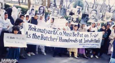 قربانيان تروريزمدر پایان مصاحبهای با یكی از برگزاركنندگان تظاهرات ضد تروریزم باند گلبدین (كه در شماره پیشتر آمد)، خواهر ما نامهای را به خبرنگار ما سپرد كه بنام «بستگان شهیدان و اسیران آزادیخواه» جهت رد گزارش مغرضانهی «فرنتیرپست» (۲۶ مارچ ۱٩٩۵) درآن روزنامه بچاپ رسیده بود. ما درینجا ترجمه كامل نامه مذكور را از دیده خوانندگان میگذرانیم. به تاریخ ۲۱ فبروری ۱٩٩۵ عده زیادی از زنان افغان جهت آگاهی وزارت داخله پاكستان از قتل و اختطاف بستگان شان توسط تروریستهای گلبدین در خاك پاكستان تظاهراتی را علیه گلبدین حكمتیار و حزب اسلامی وی در اسلامآباد براه انداختند و خواستار تعقیب قانونی جنایتكاران در پاكستان شدند. اكثر روزنامههای معتبر پاكستان این حركت بیسابقهی زنان داغدیدهی افغان را بطور عالی انعكاس دادند. گرچه «فرنتیرپست» هم تصویری از تظاهرات را آورد لیكن گزارشی را كه انتشار داد نمایانگر موضع مغرضانهی گزارشگر شما میباشد و در غیر آن باید در برابر صداقت روزنامهنگاری وی علامت سؤال كلانی نهاد. توجه شما را به نكات آتی جلب مینماییم كه امیدواریم بعنوان توضیح در روزنامه محترم شما نشر شود: ۱ ـ جالب است كه گزارشگر شما برای ما نامی انتخاب نموده: «تظاهرات توسط "جمعیت زنان افغان" كه جدیداً تشكیل گردیده ترتیب شده بود». تشكر از ذوق سرشار گزارشگر شما! واقعیت اینست كه تظاهرات توسط «بستگان شهیدان و اسیران آزادیخواه» ترتیب شده بود و هیچكدام از ما نام «جمعیت زنان افغان» را نشنیده بودیم. ۲ ـ در گزارش گفته میشود: «تظاهركنندگان كه خود را قربانیان جنگ داخلی افغانستان میخواندند...» خیر آقا! ما هرگز خود را «قربانیان جنگ داخلی» نهنامیدهایم. دهها هزار تن از مردم ما در جریان نزاع وحشیانه بین مزدوران «جهادی» مورد حمایت خارج در افغانستان كشته شده اند، كه داستان دردناك جداگانهایست. ما موكداً خاطرنشان ساخته و میسازیم كه ما قربانیان قاتلی موسوم به گلبدین حكمتیار، «صدراعظم» بدنام و تروریستی میباشیم كه عزیزان تحصیلكرده و روشنفكر ما را در زیر زنخ حكومت ضیاء در پشاور، ربوده، شكنجه داده و به قتل رسانده است. ![]() صحنه ایی از تظاهرات وابستگان قربانیان ترور و آدمربایی باند گلبدین، مقابل وزارت داخله، اسلامآباد ۳ ـ گزارشگر شما علاوه میكند: «قابل یادآوریست كه تقریباً تمام اشتراك كنندگان، زنان افغان غیرپشتونی بودند كه در مناطق اعیان نشین اسلامآباد و پشاور سكونت دارند». این شرمآورترین نمونه تحریف حقایق و اتهام زدنی بیلجام علیه مادران ماتمدار و كودكان شان میباشد. اتفاقاً اغلب زنان تظاهرات كننده پشتو زبان بودند. اگر خبرنگار اندكی بخود زحمت میداد و نگاهی به لیست قربانیان اعمال تروریستی گلبدین در پشاور میانداخت، به سادگی مشاهده میكرد كه اكثریت آنان ساكنان مناطق پشتون نشین افغانستان میباشند. در ارتباط به دروغ دیگر خبرنگار باید پرسید كه وی چگونه توانست بفهمد كه زنان مظاهرهكننده در مناطق «اعیان نشین» اسلامآباد و پشاور بسر میبرند؟ از آن زنان حتی یكتن هم باشنده اسلامآباد نبود. تنها ۳ نفر آنان در پشاور خانهای را به مبلغ ۱۲۰۰ روپیه ماهوار به كرایه گرفته اند. آقای گزارشگر آیا چنین خانهای میتواند در منطقه «اعیان نشین» این شهر ها موقعیت داشته باشد؟ طبعاً، قربانیانی كه در مناطق «اعیان نشین» بود و باش دارند نیز میتوانند صدای خود را برضد حكمتیار و شركاء بلند كنند. مگر حقیقت اینست كه زنان مظاهرهچی در كمپ های مهاجرین زندگی میكنند، واقعیتی كه باید توجه آقای خبرنگارِ شدیداً دارای «مفكوره طبقاتی» را جلب میكرد كه مایل نیست باشندگان مناطق «اعیان نشین» برضد گلبدین «فقیر» دست به اعتراض زنند! ۴ ـ یادآوری «راوا» در گزارش كاملاً بیرابطه است. این موضوع مربوط به «راوا» میباشد كه از خود دفاع كند، مگر هر افغان آگاه میداند كه برعكس گزارش مغرضانه، بیشترین اعضای «راوا» را فارسی زبانان تشكیل نمیدهند. «راوا» تشكیلات شناخته شدهای است كه اعضای آن شامل 